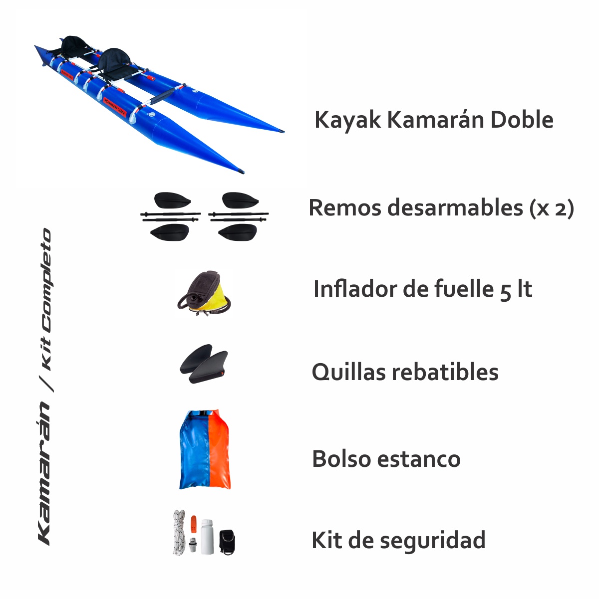 Este kayak es perfecto para explorar ríos, lagos y costas, ofreciendo una experiencia de navegación placentera y relajante. Su diseño ergonómico proporciona comodidad durante largas horas en el agua, permitiendo disfrutar de la belleza del entorno sin preocupaciones. Ya sea para una jornada de pesca, un paseo en familia o una aventura en solitario, el Kamarán Kayak Doble es la elección perfecta para quienes buscan calidad y funcionalidad en un solo producto.